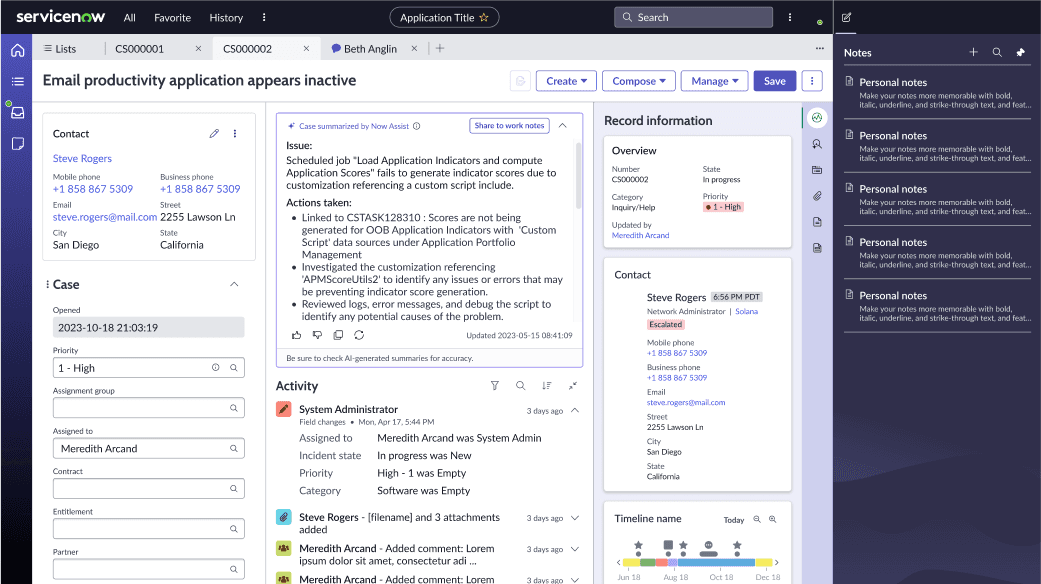 Secure Sharing: Notes can be shared with team members (higher tier agents during escalation) under proper permissions.